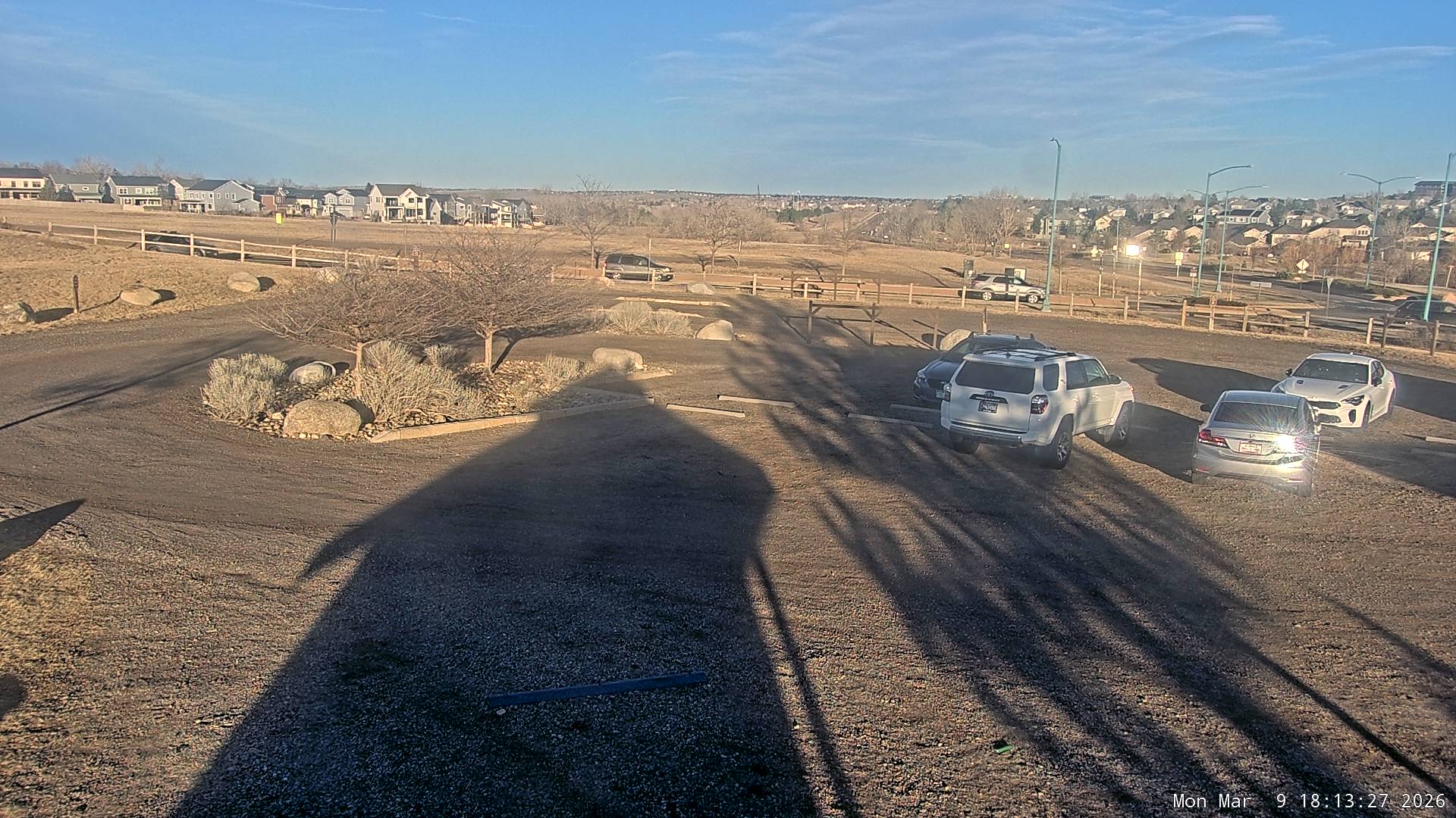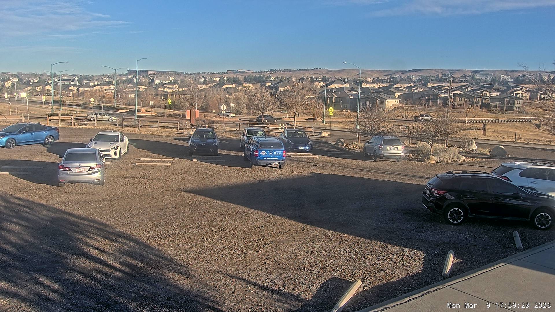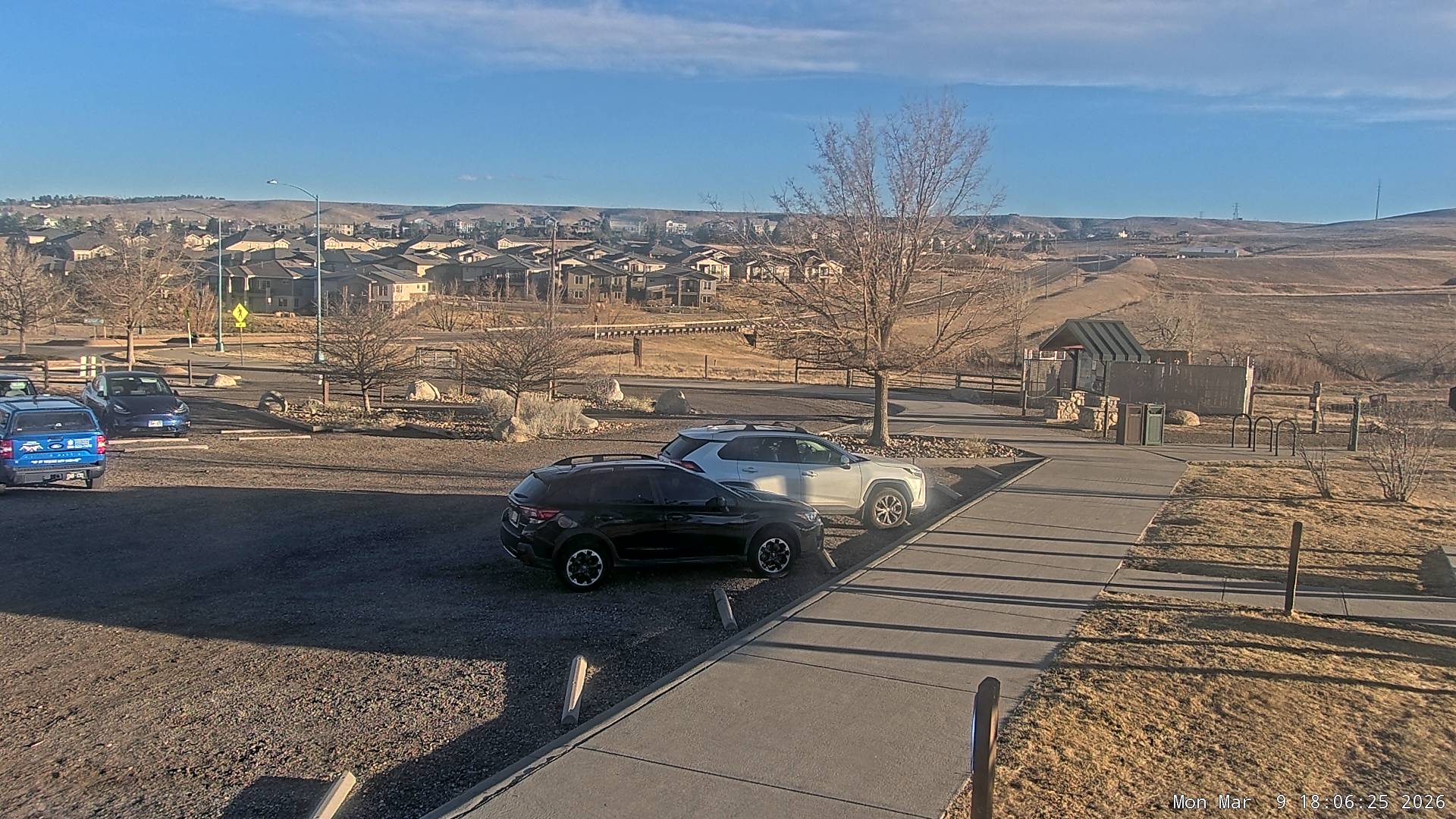 Live view of the Coalton Trailhead parking lot looking east